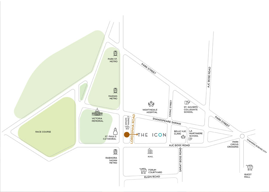 THE ICON is coming up on the historic Lord Sinha Road, one of the most coveted addresses in Kolkata. Flanked by AJC Bose Road to its south and Shakespeare Sarani to its north, the neighborhood is renowned for its elite status, aristocratic elegance and quietude, in spite of being located in the heart of the city.